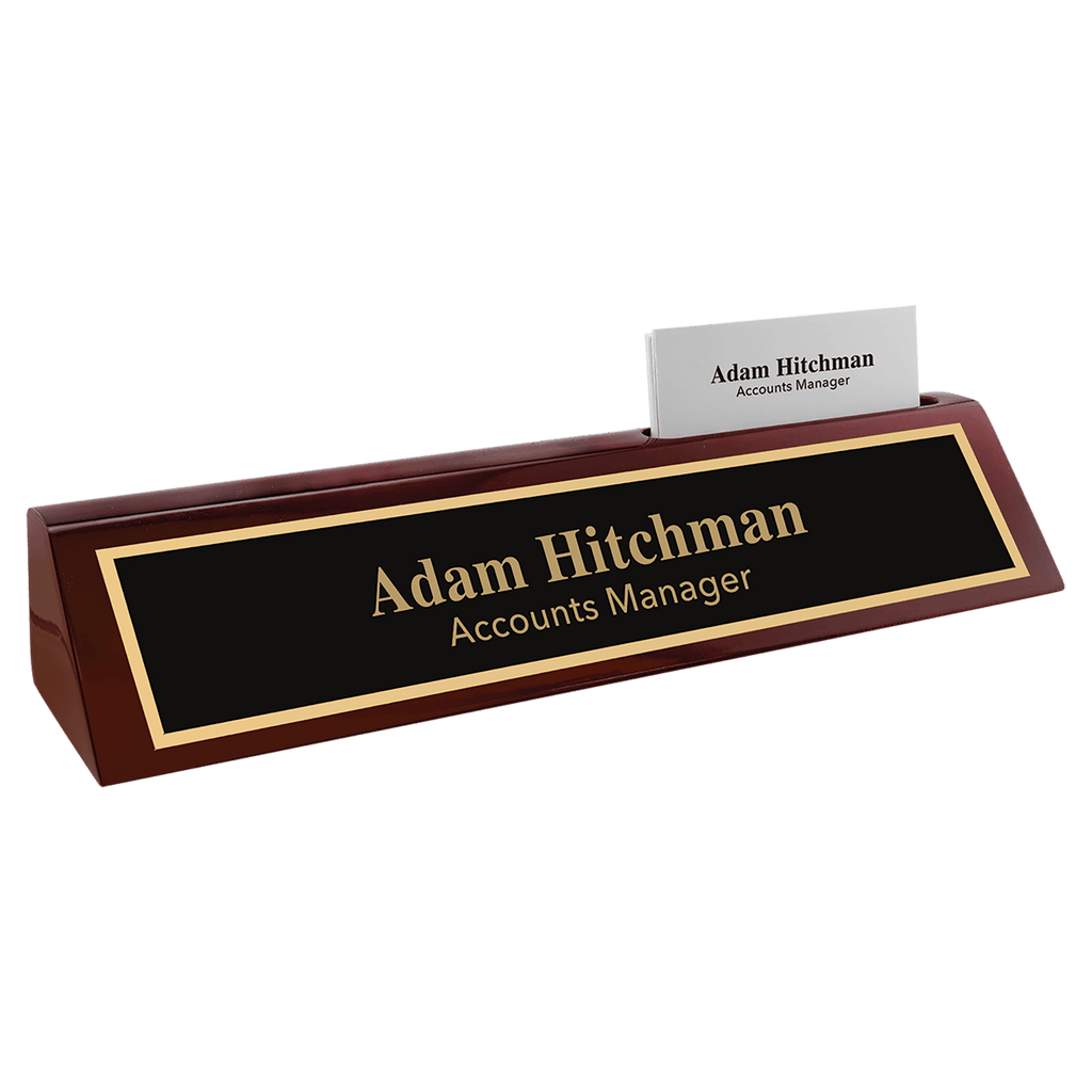 The Red Piano Finish Desk Name Wedge with Card Holder combines professional branding with intelligent workspace organization. Its lustrous piano finish creates an impressive desk presence while the prominent name display area establishes your professional identity. The integrated card holder provides convenient access to business cards An executive-caliber accessory that projects authority and competence while delivering practical organizational benefits for discerning professionals.